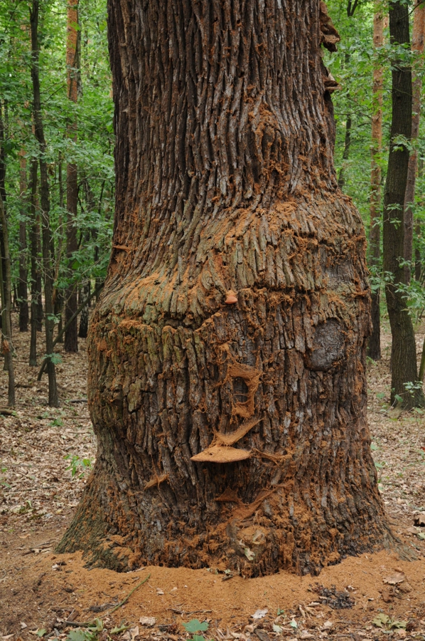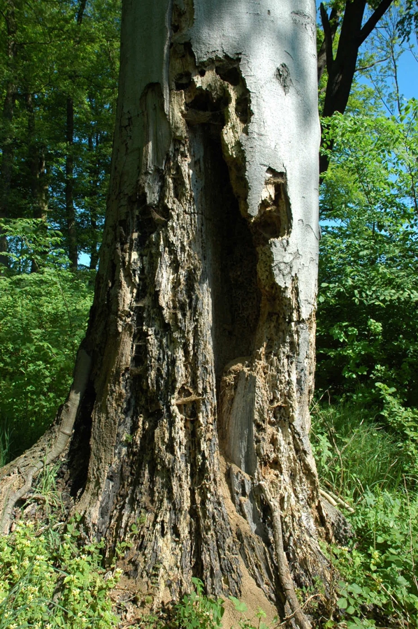 Besonders bedeutsam für den Artenschutz sind anbrüchige Bäume. Der Begriff „anbrüchig“ bezeichnet lebende Bäume, die schon Totholzstrukturen entwickelt haben. Dies sind einerseits Stämme mit weitgehend intakter Krone, die zum Beispiel verpilzende Blitzrinnen, großflächigere Borkenverletzungen, Ausbruchstellen von Ästen und Stämmlingen, Höhlungen, große Aststümpfe, Astlöcher oder austrocknende Kronenteile aufweisen. In solchen noch lebenden Bäumen werden die verpilzenden, verpilzten, schließlich vermorschten und vermulmten Stammbereiche konstandt mit Photosysntheseprodukten und Wasser versorgt. Anbrüchige Bäume sind die notwendige Vorstufe eines Alterungsprozesses, der mit hoher Wahrscheinlichkeit zur Bildung von Großhöhlen führt. Und Großhöhlen zählen wegen ihres Artenreichtums und ihrer Gefährdung aus der Sicht des Naturschutzes zu den wichtigsten Schlüsselhabitaten der Biodiversität.