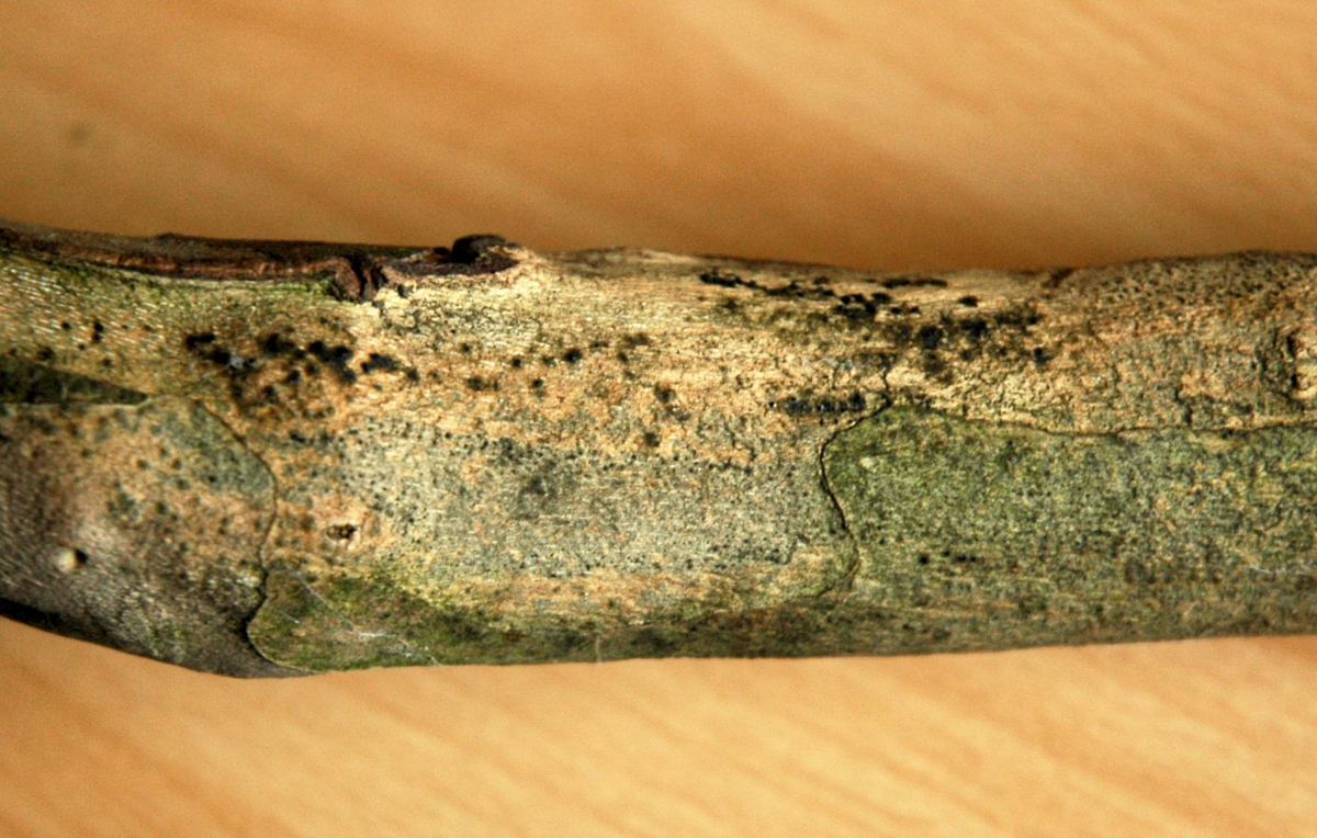 - Eine selektive Weißfäule (selektive Delignifizierung), z. B. durch Flachen Lackporling oder Wurzelschwamm. Sie erzeugt durch bevorzugten Ligninabbau bereits in den frühen Phasen der Holzzersetzung eine Holzerweichung (das Holz wird durch fortschreitende Abnahme der Steifigkeit weicher). Es entsteht dann eine Zähbruchgefahr. Die Bruchflächen erscheinen zumeist aufgehellt und langfaserig, einige Pilzarten können durch Oxidationsprozesse beim Holzzabbau eine bräunliche (z. B. bei Hallimasch) oder rötlich-braune Verfärbung hervorrufen.