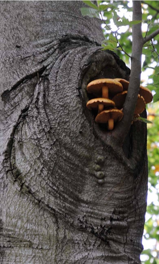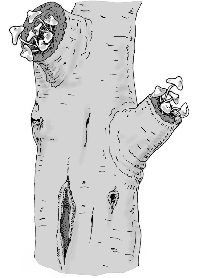 Lokale Holzzersetzung in Stämmen, Stämmlingen und Ästen entsteht häufig durch dicke Totaststümpfe bzw. durch großflächigere Schnittmaßnahmen. Wegen der Ausdehnung der Eintrittspforte im Starkholzbereich benötigen Abschottungsreaktionen des Baumes lange Zeiträume. Für das Wachstum von Pilzmyzelien sind das Substratangebot, die Versorgung mit Sauerstoff und der Feuchtigkeitsgehalt günstig. Das Totholzangebot ist relativ umfangreich, sodass Pilzmyzelien erstarken können. Somit kann der Verpilzungsbereich von den Bäumen häufig nicht abgeschottet werden. Zudem benutzen mehrere Arten holzzersetzender Pilze einwachsende Totastreste für die Besiedelung des Stamminneren. Die mittel- und langfristige Bildung der für den Artenschutz so bedeutsamen Baumhöhlen ist die Regel.