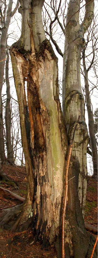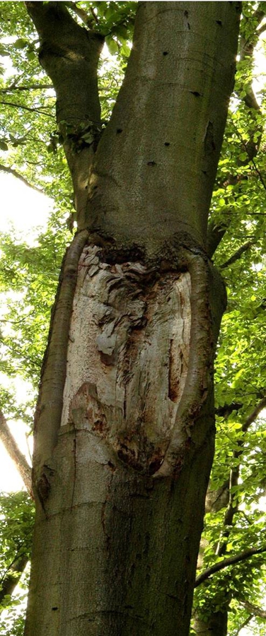 Bei Bäumen mit Druckzwieseln, insbesondere ausgedehnten Rindeneinschlüssen mit wenigen umfassenden Jahrringen, kann das Versagensrisiko deutlich erhöht sein, insbesondere wenn es zu Veränderungen, wie z.B. Freistellungen, gekommen ist.