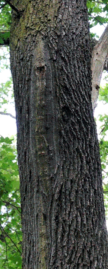 Ob nun in mittelalten, schlankeren Bäumen oder in dicken, kleinkronigen Altbäumen – offen stehende Risse und Spalten sind in der Regel durch Anbrüche oder Teilversagen entstanden und können auf einen bevorstehenden Bruch hinweisen. Ob es ein konkretes aktuelles Bruchrisiko gibt, ist durch eine fachkundige Bewertung der Rissursache und des jeweiligen Gefahrenpotenzials zu bewerten.